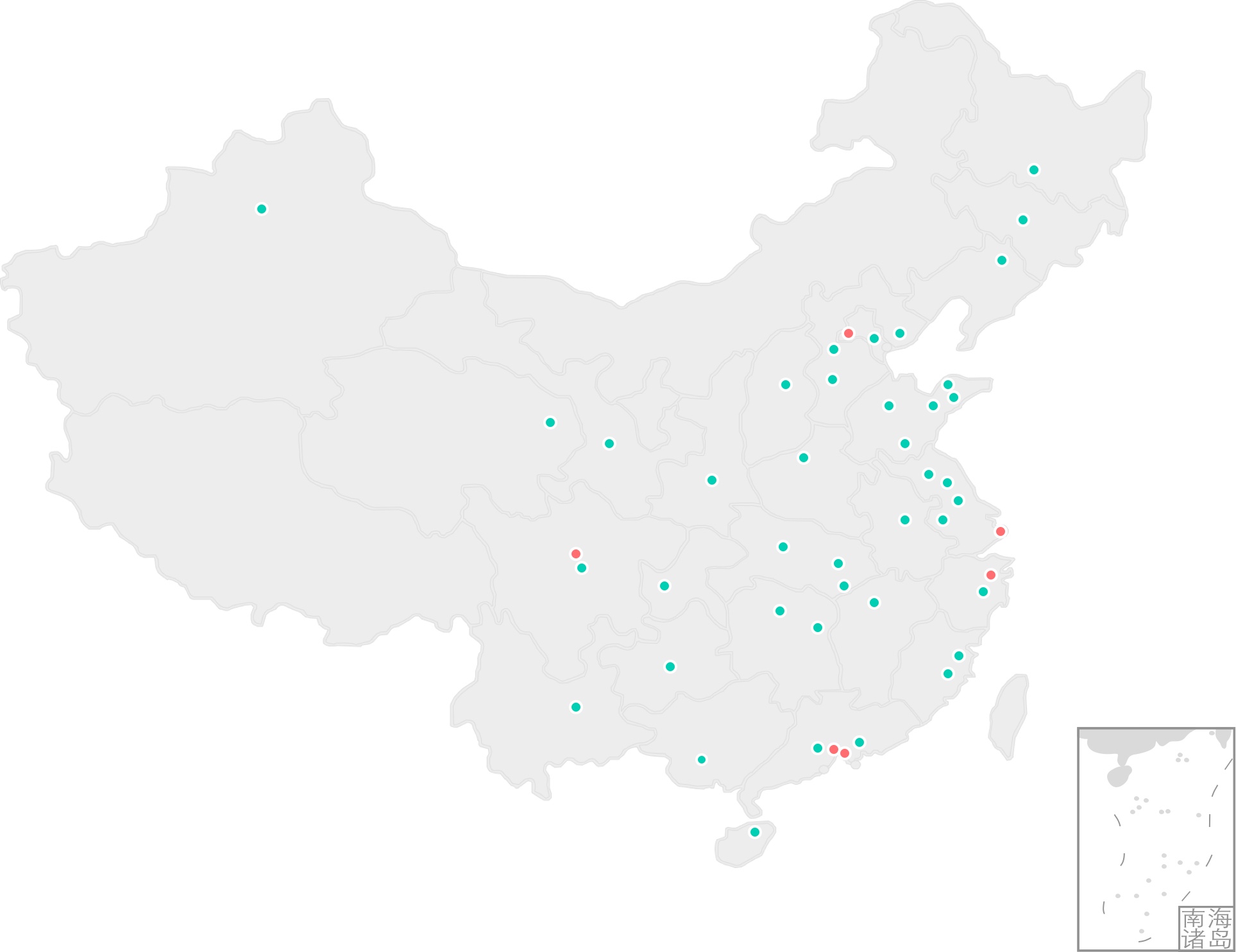 武汉、重庆、西安、天津、郑州、东莞、苏州、长沙、青岛、南京、宁波、合肥、温州、昆明、福州、石家庄、太原、厦门、南宁、无锡、南昌、济南、徐州、泉州、贵阳、沈阳、南通、保定、常州、金华、潍坊、绍兴、惠州、临沂、唐山、烟台、台州、大连、哈尔滨、嘉兴