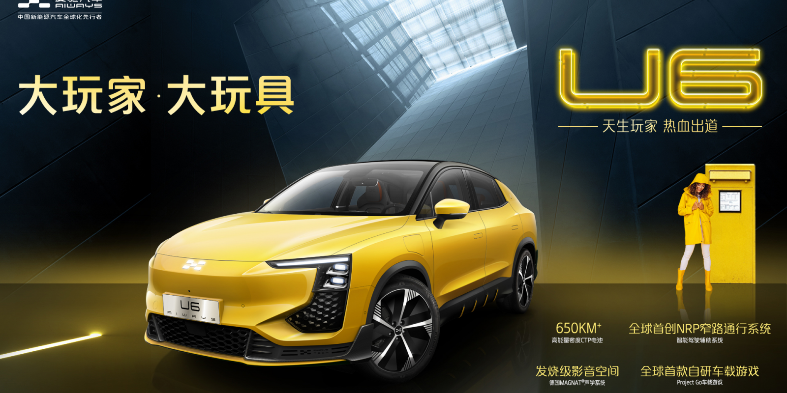 作为爱驰推出的全新产品,U6将承担起爱驰与“心年轻”用户群体沟通联结的重任,并与其潮流共创,为高能玩家助力赋能。