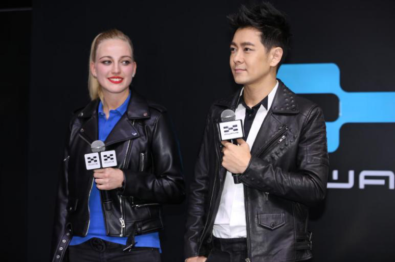 (知名艺人、职业赛车手林志颖和国际知名职业赛车运动员Gabriela Jilkova亮相爱驰展台)