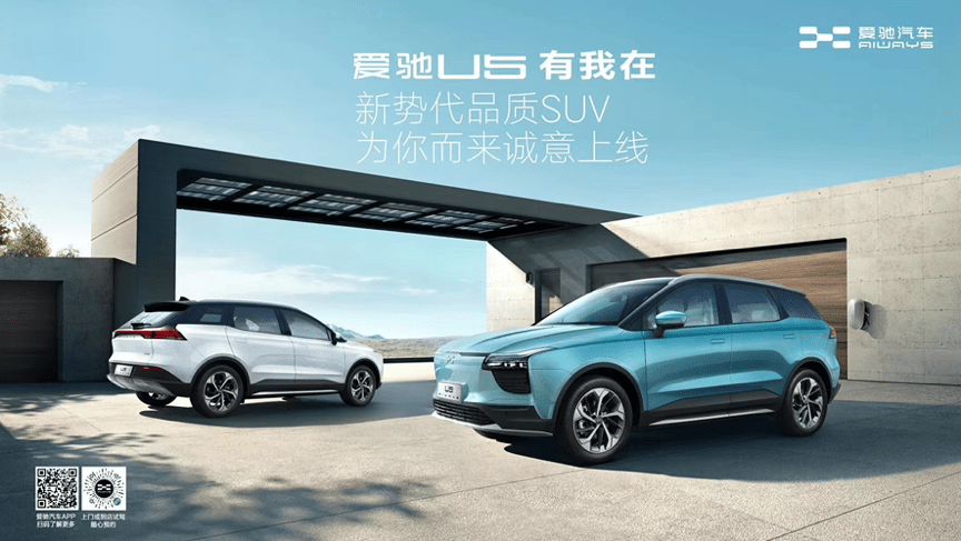 2019年底,爱驰U5在海南万宁正式上市,并在全球范围内同时启动交付,新车补贴后售价19.79-29.21万元。U5作为爱驰旗下的首款车型,定位为A+级中高端智能纯电SUV,基于爱驰汽车正向自研的智能纯电整车MAS平台架构打造,得益于可延伸、可扩展的平台优势,爱驰U5在空间方面达到同级最优,车身尺寸为4680 mm /1865 mm /1700mm,轴距达到2800mm。爱驰首创的“上钢下铝” 创新车身结构全球领先,在降低用户维修成本的同时,结合超低的风阻系数使得车身轻量化和车身安全达到完美均衡。
