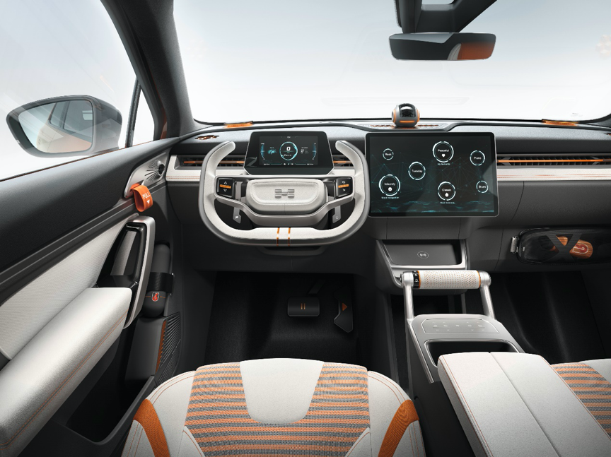 U6 ion外造型设计DNA源自爱驰电动超跑—RG Nathalie,整车视觉情绪表达“更凶更酷“,宽趴的车体加上尾部倾斜流线的coupe风格,使得U6 ion流露出浓浓的运动气质。内饰的设计则采用“趣玩智美”的理念,跨界是它的设计精髓,简洁明畅的座舱设计,时尚鲜活的配色风格,每一处细节均彰显出精致感与潮流范。U6 ion造型图的率先公布让不少消费者大饱眼福,新车的发布首秀将择日举办,敬请期待。
