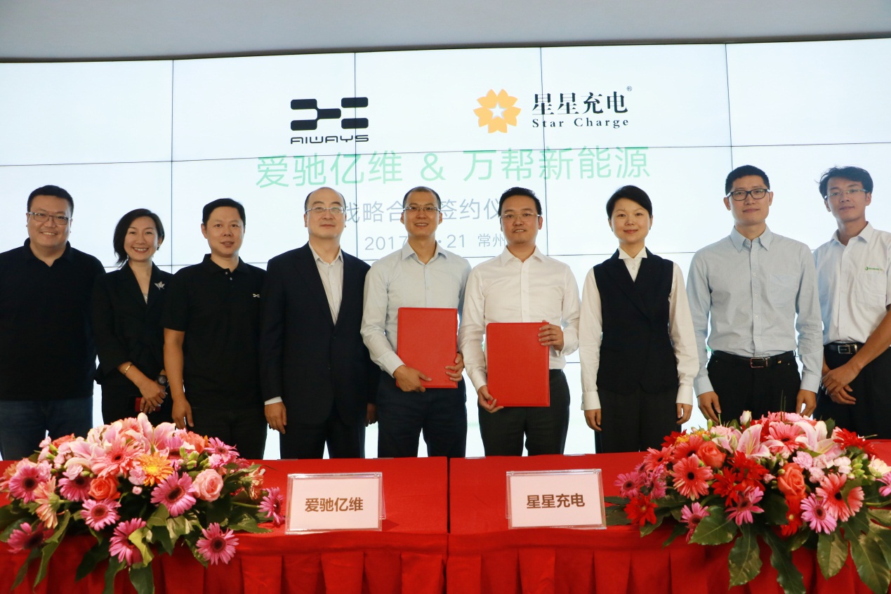 9月21日,爱驰亿维与星星充电在江苏省常州市万帮新能源投资集团有限公司总部举行战略合作签约仪式。万帮新能源投资集团、星星充电董事长邵丹薇、江西爱驰亿维实业有限公司联合创始人兼总裁付强及双方领导共同出席,并见证了本次签约仪式。