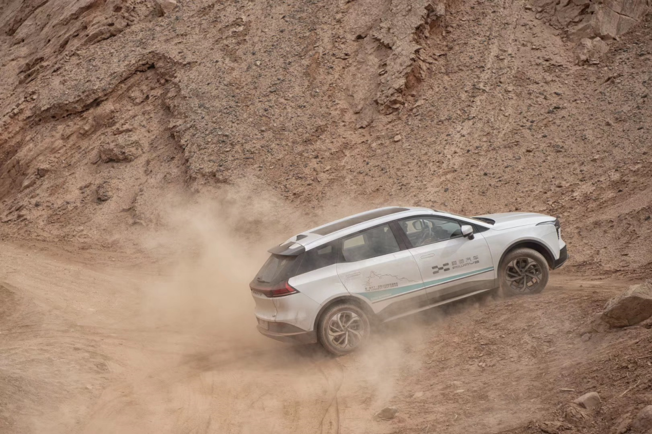 在高温、干旱、复杂路况等不利因素的影响下,作为爱驰汽车旗下首款中型高级纯电动SUV的爱驰U5始终表现出色,通过坚实的技术实力成功克服了诸多不利条件,并以从容的姿态出嘉峪关,经敦煌,由星星峡驶入新疆,在7月22日正式跨入耸立着巍巍天山、覆盖着荒茫大漠的西域地界,在干旱极端的气候与漫天的风沙中展现出中国智造的强劲实力。