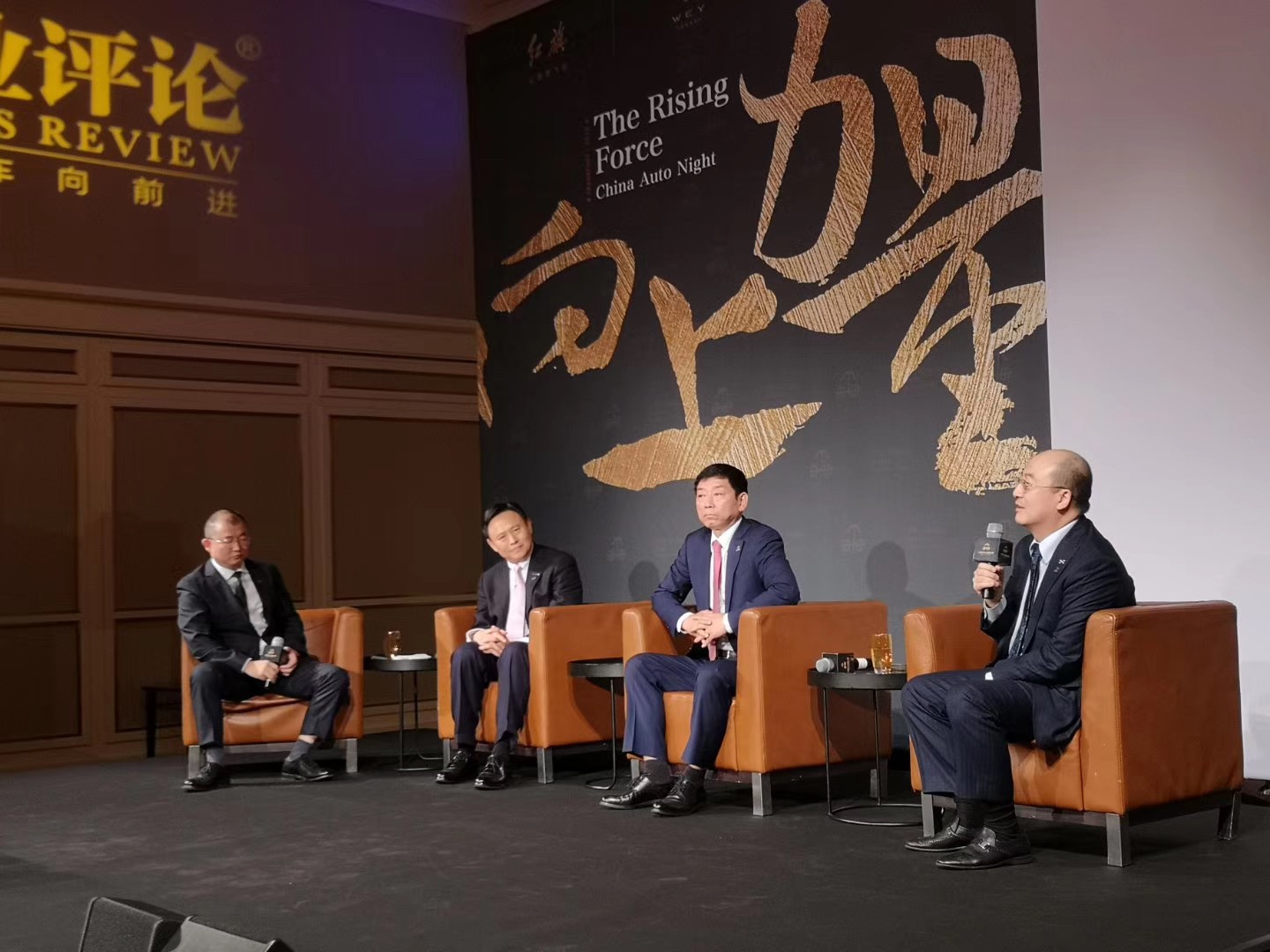 爱驰汽车联合创始人兼董事长付强(右一)