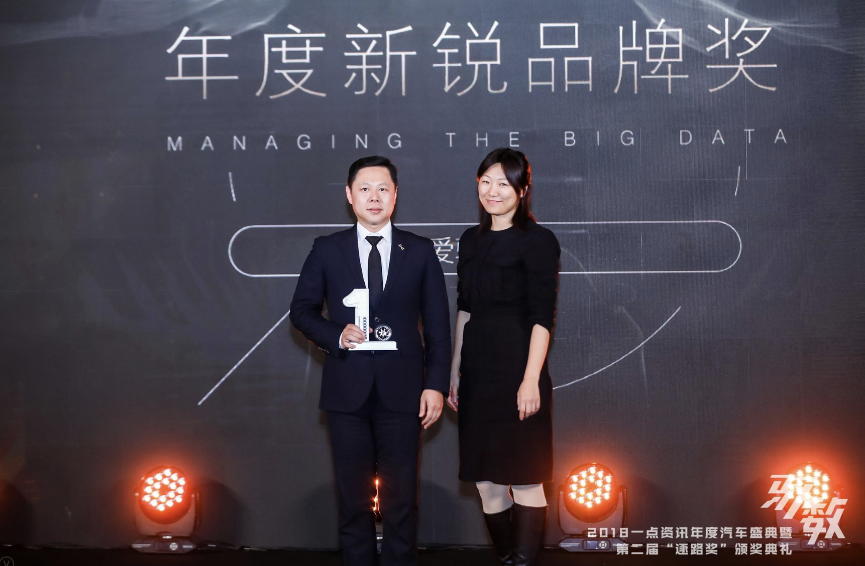 1月19日,在由中国国际贸易促进委员会汽车行业分会、中国国际商会汽车行业商会指导,一点资讯主办的“驭数”2018年度汽车盛典上,中国新势力造车中坚品牌AIWAYS爱驰亿维获得“年度新锐品牌”大奖。