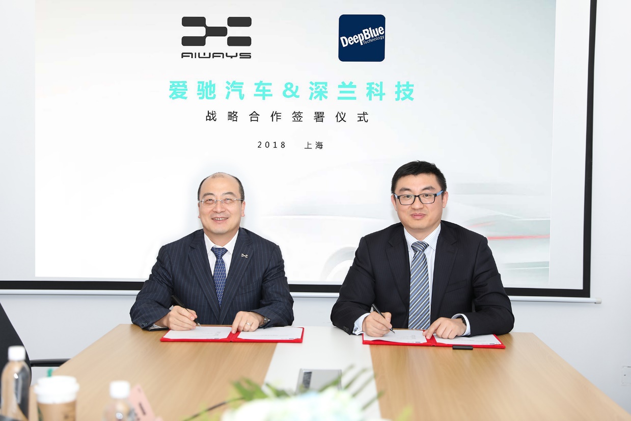 爱驰汽车联合创始人兼总裁付强、深兰科技董事长陈海波签署战略合作协议