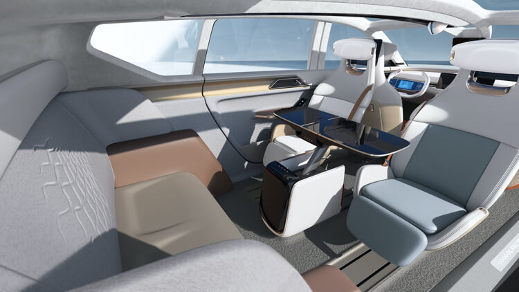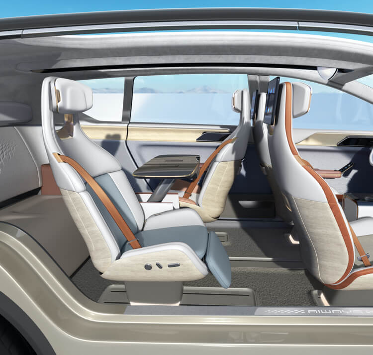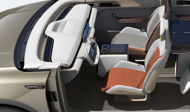 U7 ion的副驾驶座椅靠背中芯可向前翻折,第二排乘客可放脚进行休息。此外,第二排豪华贵宾座椅不仅支持靠背角度可调、腿拖调节,还能够进行180度翻转,从而实现乘客面对面交流的使用场景。