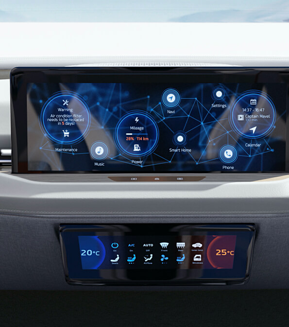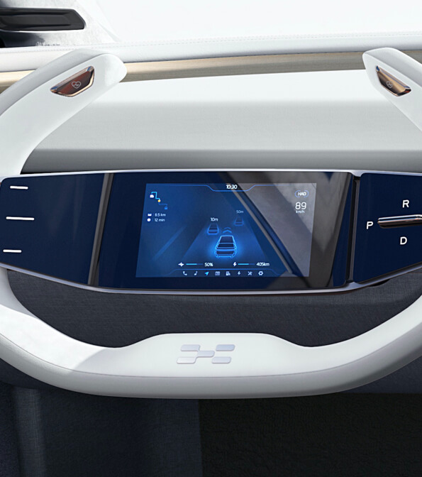 高清屏幕创新性地设计于方向盘内,各项驾驶信息一目了然,科技感十足,极具有前瞻性的一体化设计