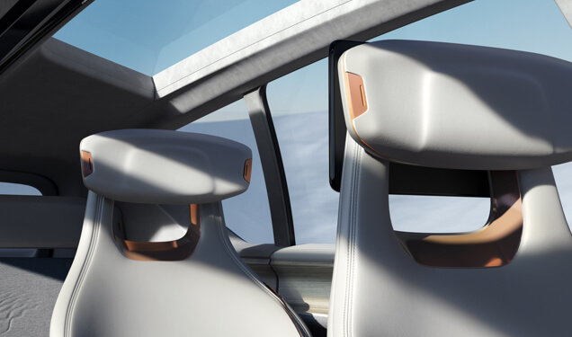第一、二排座椅头枕处设私人专属音乐系统,可进行音乐定向播放。